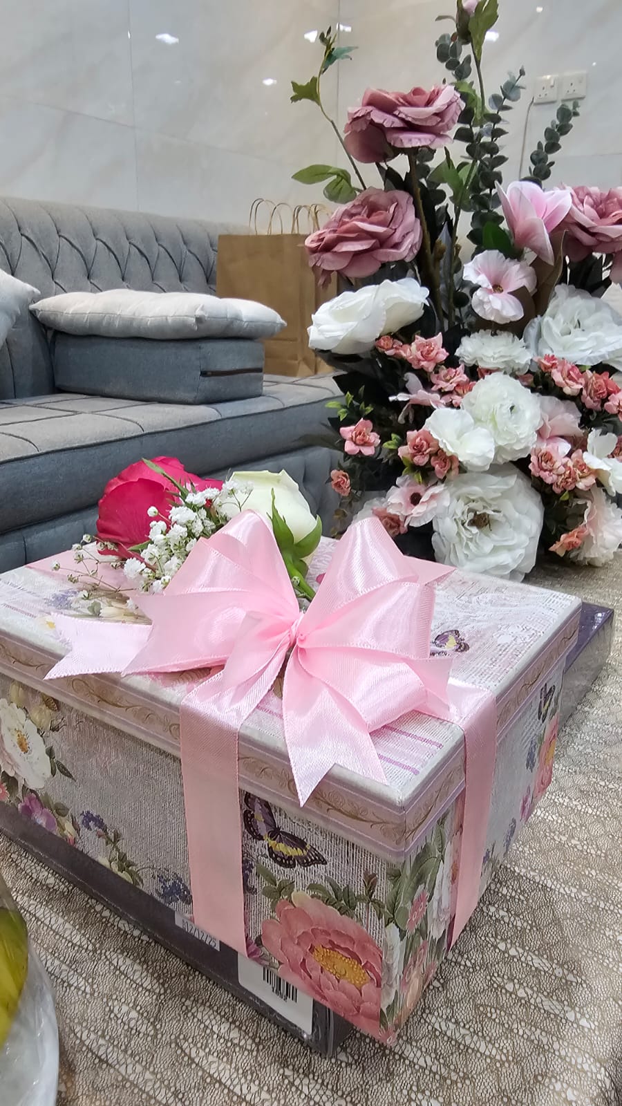 ليكون هو من يكرم أخته والأم فاطمه عبدالله الحميدي وسط أجواء من الفرح والبسمة والسعادة التي جابت كل أرجاء المنزل